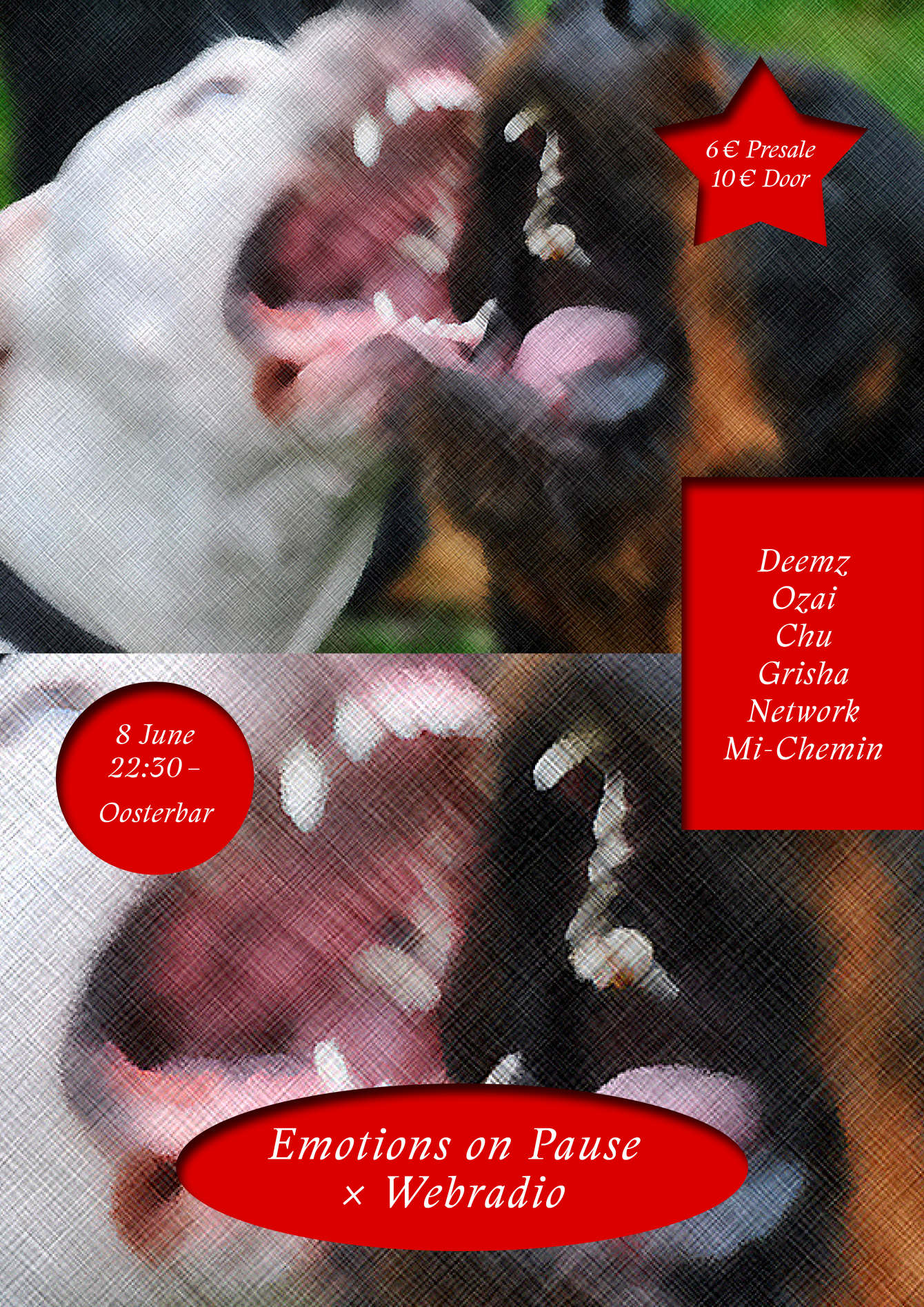 Poster design for Emotions on Pause × Webradio at Oosterbar in Amsterdam, Netherlands.